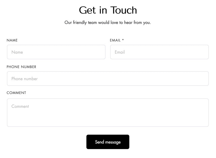 The "Contact Form" section allows visitors to easily reach out with questions or feedback. It improves communication, enhances customer service, and makes connecting with the brand convenient.