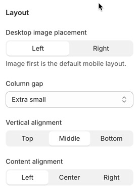 Desktop image placement - Left / Right (Image first is the default mobile layout.)