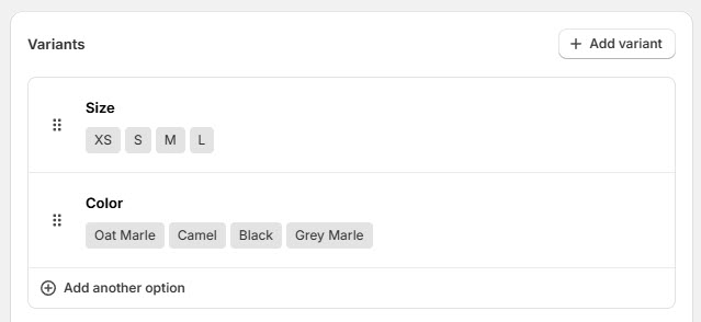 * **Matching option names** - Define option names to which the color swatch variant picker will be applied.