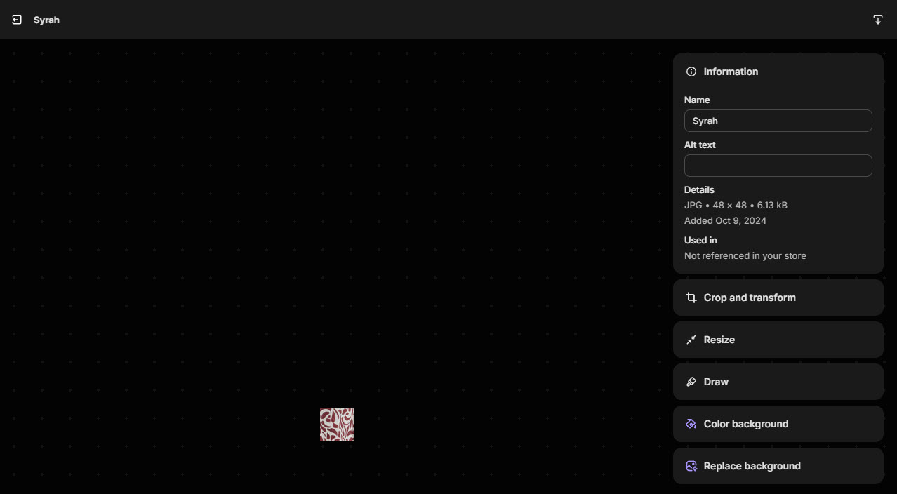 Once uploaded, click on the image and copy name of image In the screen below, it is Syrah.jpg