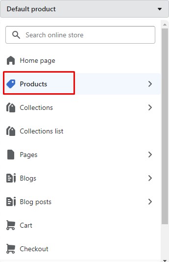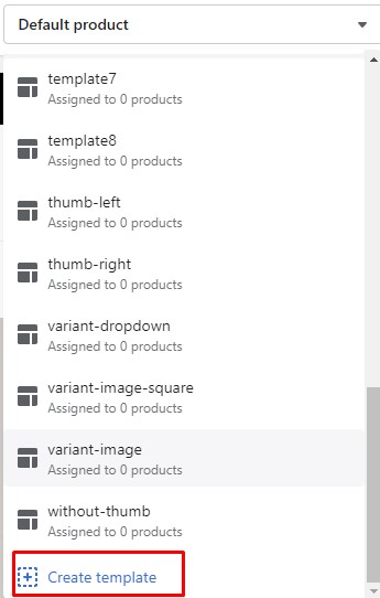 1. In the theme editor (Customize), use the page selector to open Products > Create template.
