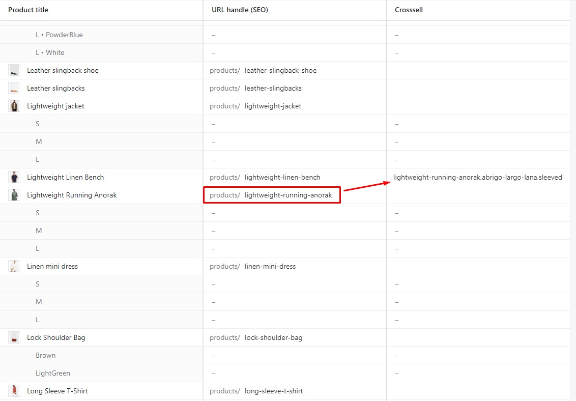 Please click => Enter product handle here (Crossell column). You can access settings it