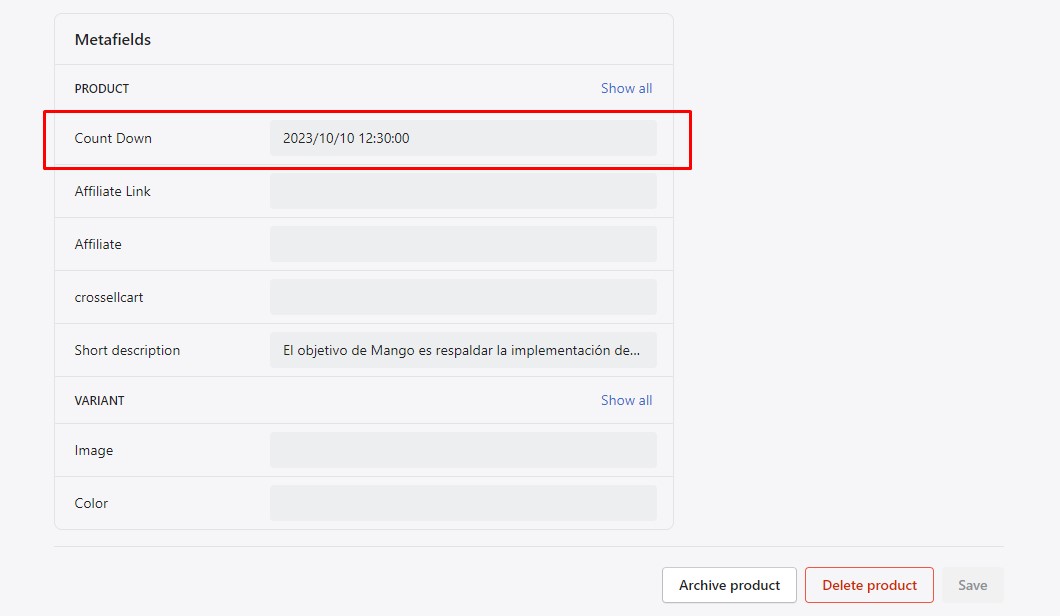 Or you can access link ' Enter the end times here.' => You can enter Count Down for each product