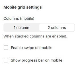 * **Columns (mobile)** - 1 column / 2 columns (When stacked columns are enabled.)